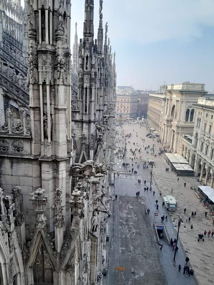 Even though Rome is the official capital of Italy, Milan is the hard-working economic engine of the country. A lot of naysayers would recommend skipping this industrial northern city that’s commonly characterized as “gray and dull” for the more vibrant, southern Italian destinations; but for me, visiting Milan offered a good insight into how real Italians live, work and play. And it was worth visiting for the imposing Duomo cathedral and the gorgeous Galleria Vittorio Emanuele II alone! When I visited Milan for the first time almost 20 years ago, the Duomo’s facade was black from centuries of neglect and air pollution. However, on this visit in late January 2024, I was delighted to see that restoration work had been completed and all of the soft subtle colors of Candoglia marble could be seen up close, and all the intricate sculptures covering every inch of the exterior could be admired in their full glory. It’s also the largest church in Italy and the third largest in the world with a remarkable interior filled with giant Redwood sized columns, original colored marble mosaic floors, Renaissance sculptures and religious art. The rooftop is now open to visitors as well to marvel at all the pointy Gothic spires, arches, sculptures and views! Be sure to purchase your tickets in advance at the official website. We chose to do the guided tour of the cathedral and the rooftop and were very satisfied.
